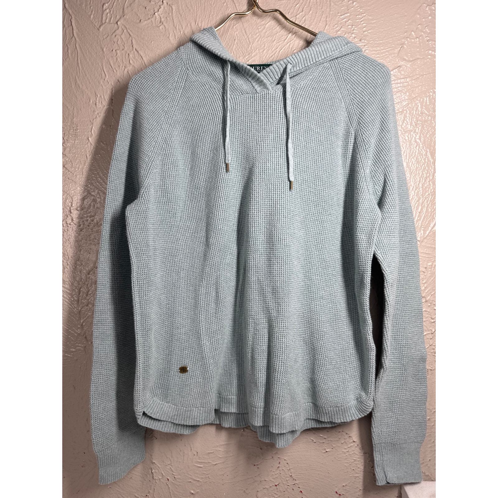 - LRL Lauren Ralph Lauren Waffle Knit Cotton Hooded Pullover Sweater Top Size XL