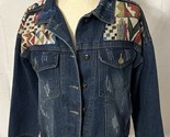 LRUD Womens Denim Jacket South Western Patchwork Tapestry Pattern Size Lrg