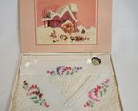 La Fleur Swiss Style Embroidery Handkerchiefs Set Linens Vintage White Pink NOS