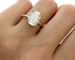 This exquisite engagement ring features a stunning 4ct. Elongated Cushion cut Lab grown diamond VVS1 clarity and G color,11.35 - 8.26 x 5.55 MMat the center. Meticulously crafted to capture the brilliance and fire of a natural diamond. Set in luxurious 14K yellow gold with double claw prong set style, it has hidden halo round diamonds 0.10 cttw. This ring offers a timeless elegance that is perfect for celebrating your love.