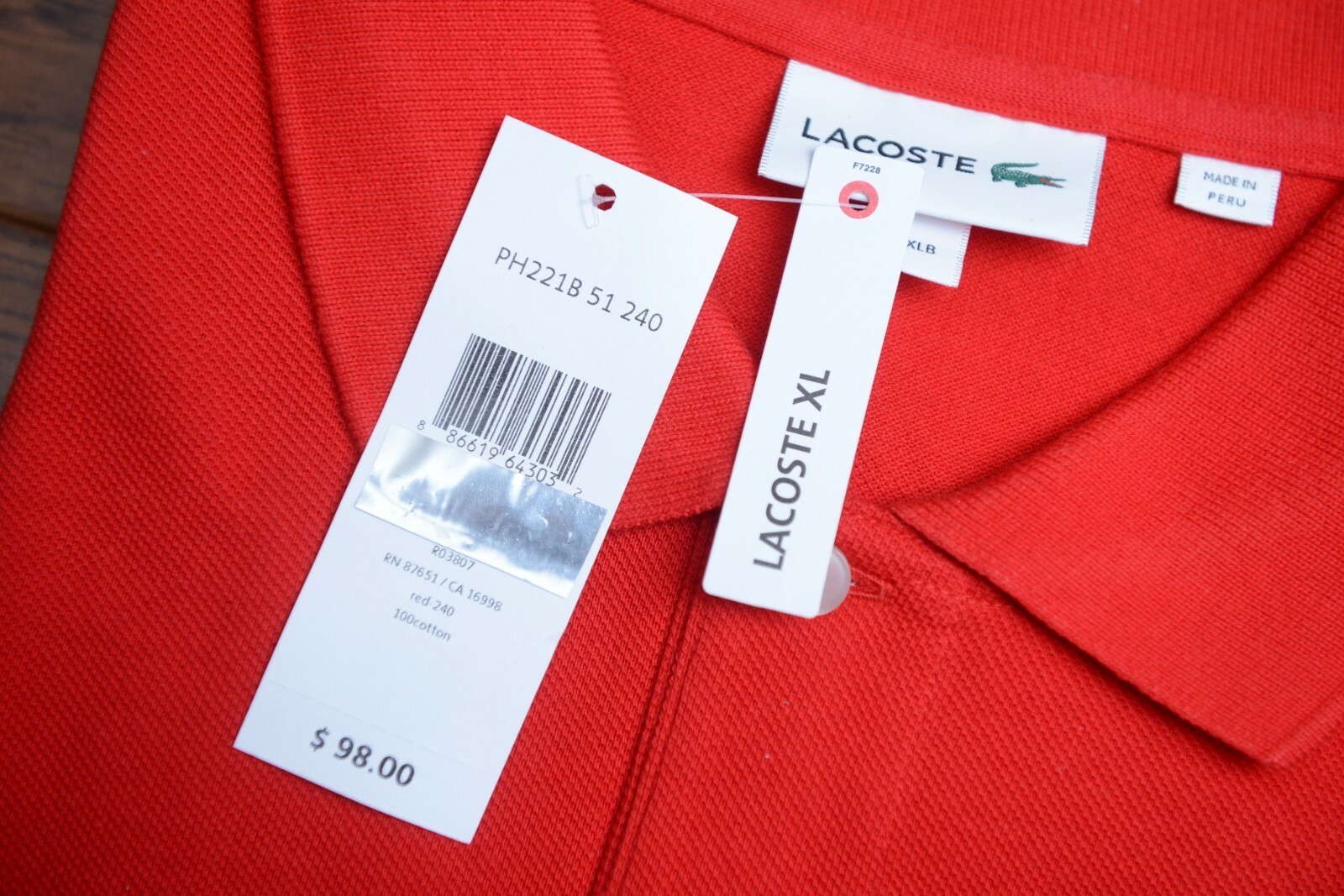 - Lacoste PH221B Men‘s Red Mesh Cotton Polo Shirt Big & Tall 1XLB EU 8R