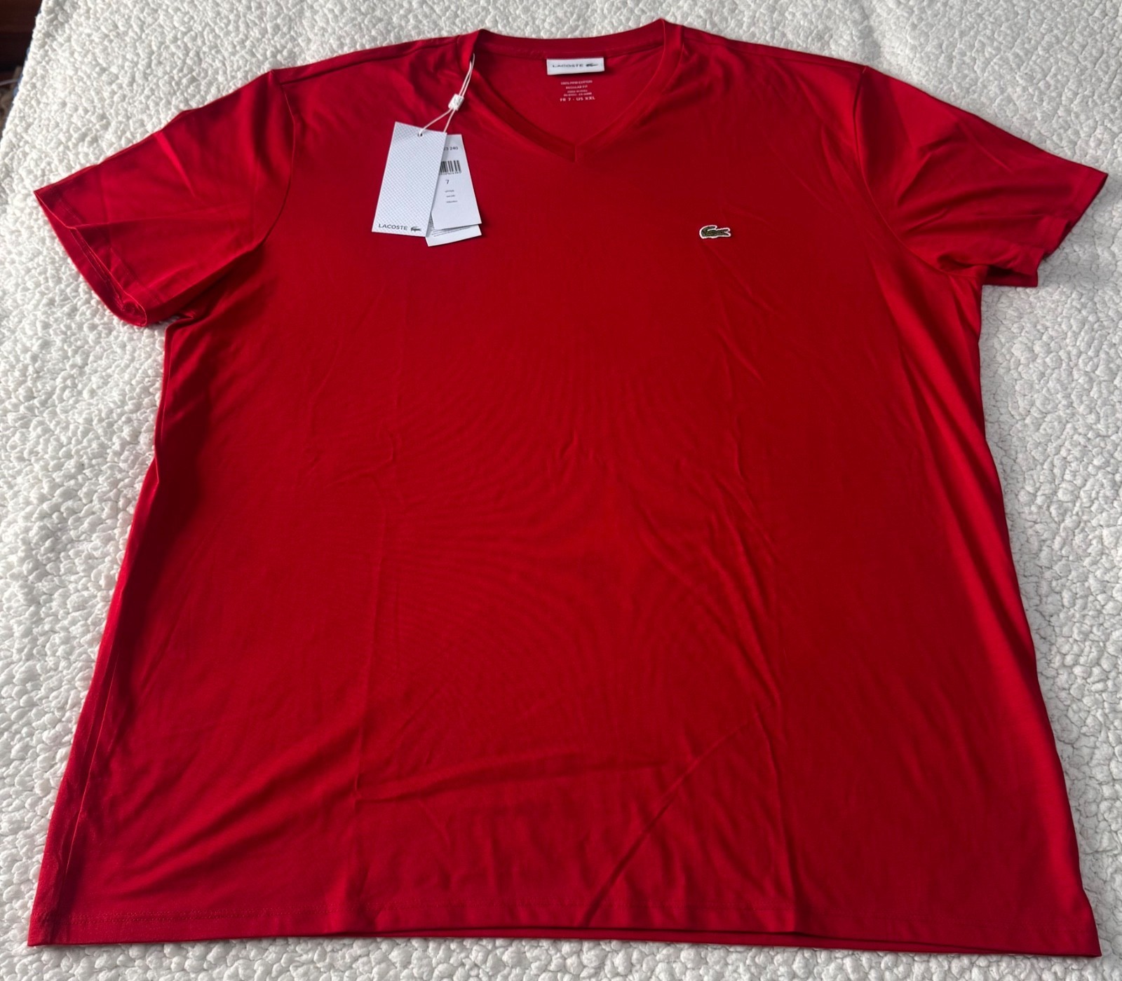 - Lacoste Red Short Sleeve 100% Pima Cotton V-Neck Jersey T-Shirt Size XXL NWT