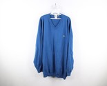 Lacoste Womens Size 10R Distressed Croc Logo Knit V-Neck Sweater Blue Cotton