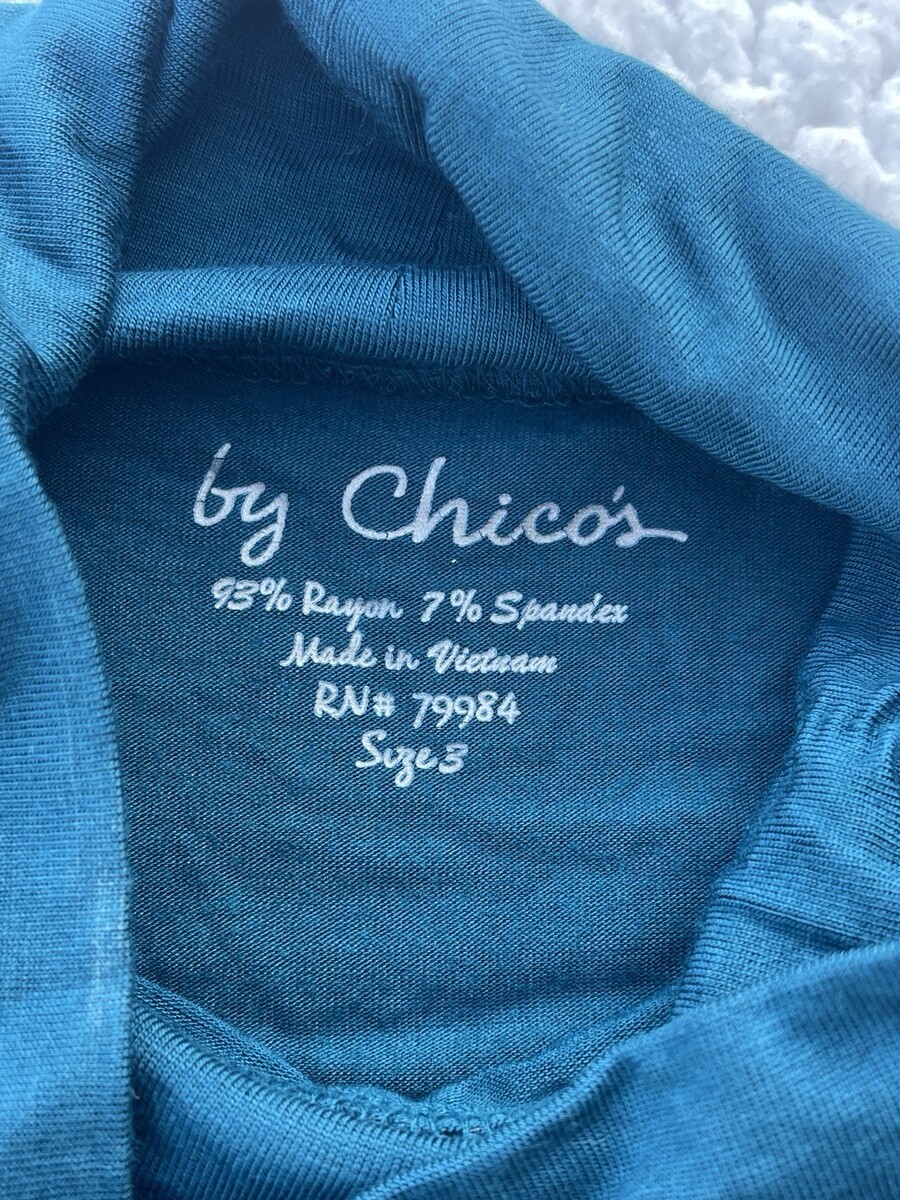 - Ladies by CHICO'S Turquoise Rayon Blend Turtleneck Long Sleeve Top Size 3