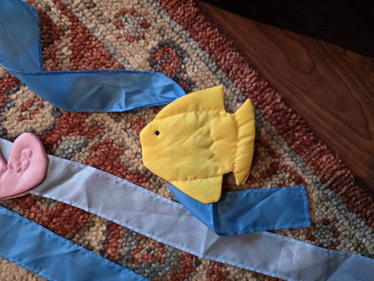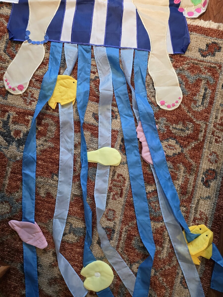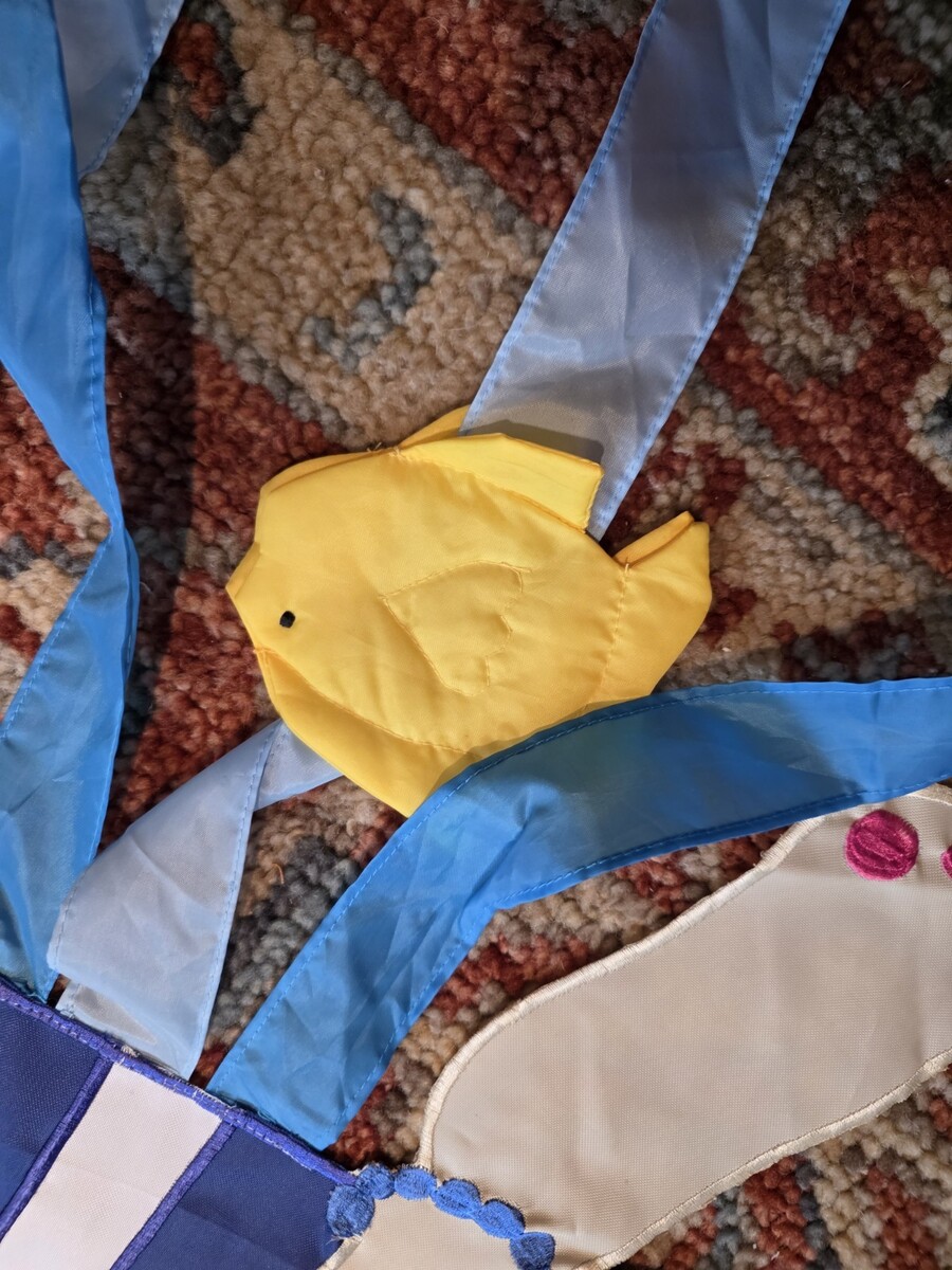 - Lady in Beach Chair Flag Read Book Drink Umbrella Streamers Fish Seahorse 27x70
