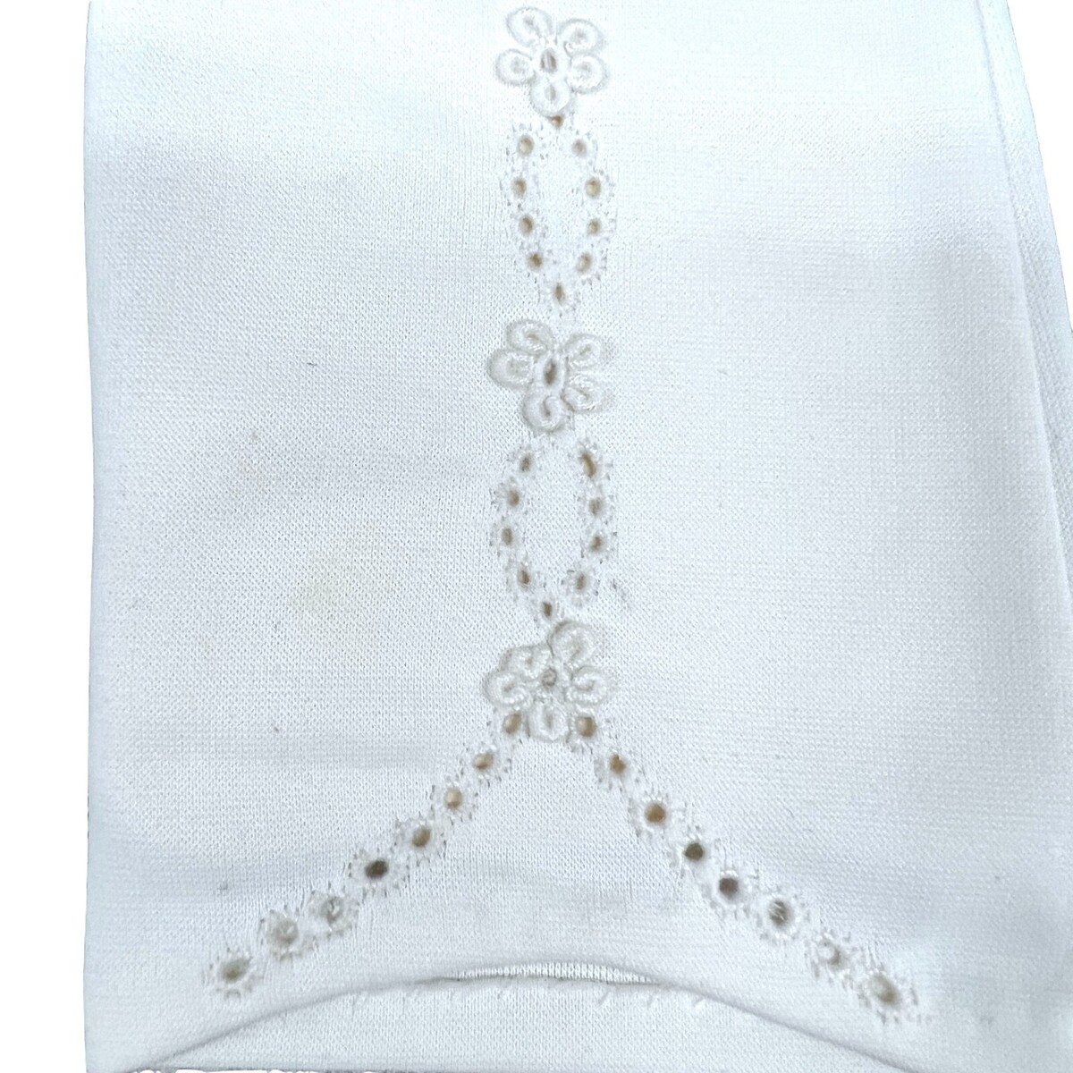 Step back into an era of grace with these exquisite Vintage 1950s Dainty White Gloves! Imagine them gracing your hands at a tea party or a Sunday church service. These gloves are a pristine clean white and feature a truly pretty eyelet and flower design on the top. They even still have their original paper "hands" inside, a sweet little detail that speaks to their untouched past!