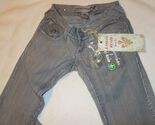 Tonal stitching and back flap pockets highlight this pair of straight-leg jeans from Laguna Beach. These women's jeans feature a stylish gray wash and a touch of spandex for ease of movement. custom Fleur De Lis buttons, grommets ,Crystal Accent , and leather inserts on back pockets. Also note the thick hand made thread stitching on the seams and pockets that give these pants texture and depth!