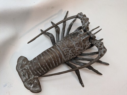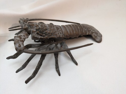 Laiton Vintage Homard Écrevisses Crustacé Crevette Figurine Presse-Papier 7.5”