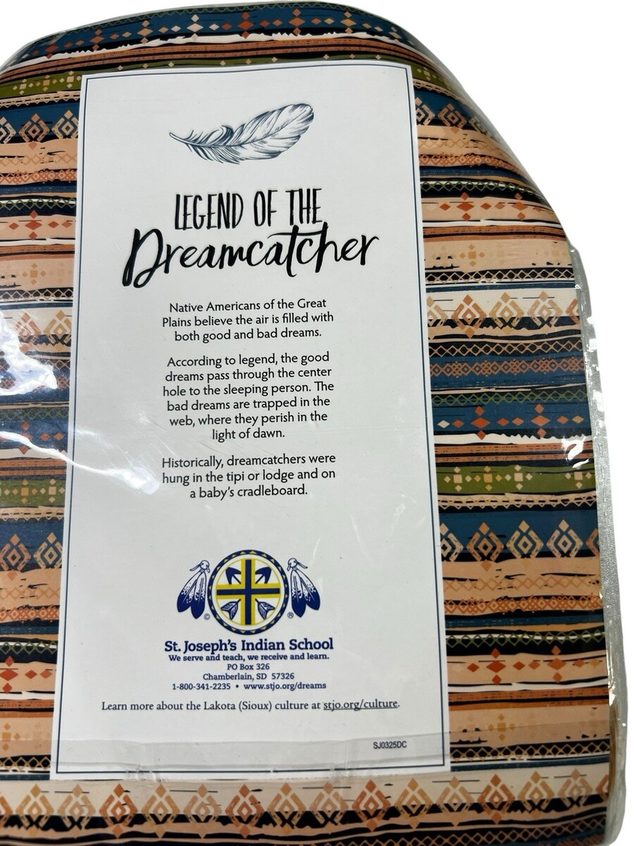 Authentic Lakota Sioux style dreamcatcher from St. Joseph?s Indian School. Measures approximately 4.5? in diameter, crafted with a wrapped hoop, webbed center, beads, and natural feathers. Includes insert card with ?Legend of the Dreamcatcher? explaining its cultural meaning and history. Perfect for display, gift-giving, or adding to a Native American craft collection. Still sealed in original packaging. #Dreamcatcher #Lakota #NativeAmerican #Feathers #Decor