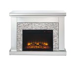 Features: Rectangular Fireplace Beveled Mirrored Finish, with Faux Stones Inlay (B) Electric Fireplace: (LED), BTU Output: 4777 BTU's, Heating Area: 400 sq ft Fireplace with Touch Control Panel Remote Controller Functions: Adjustable Temperature, Timer, Flame Light Only-NO Heat Set Includes: One (1) Fireplace