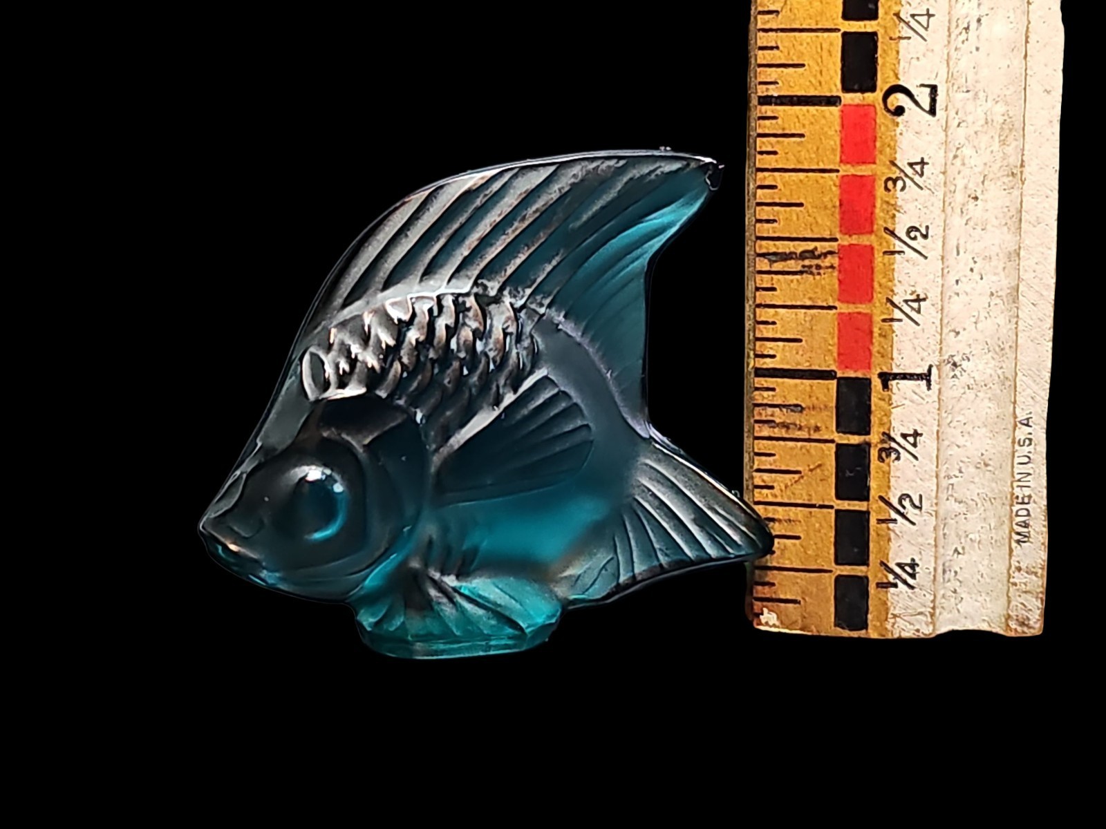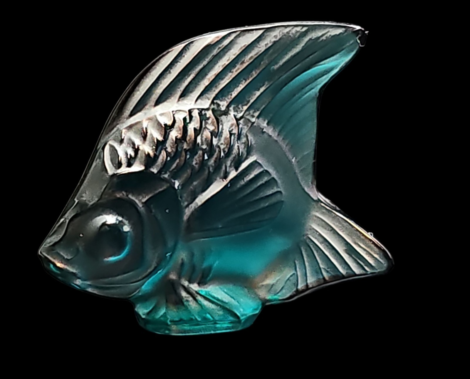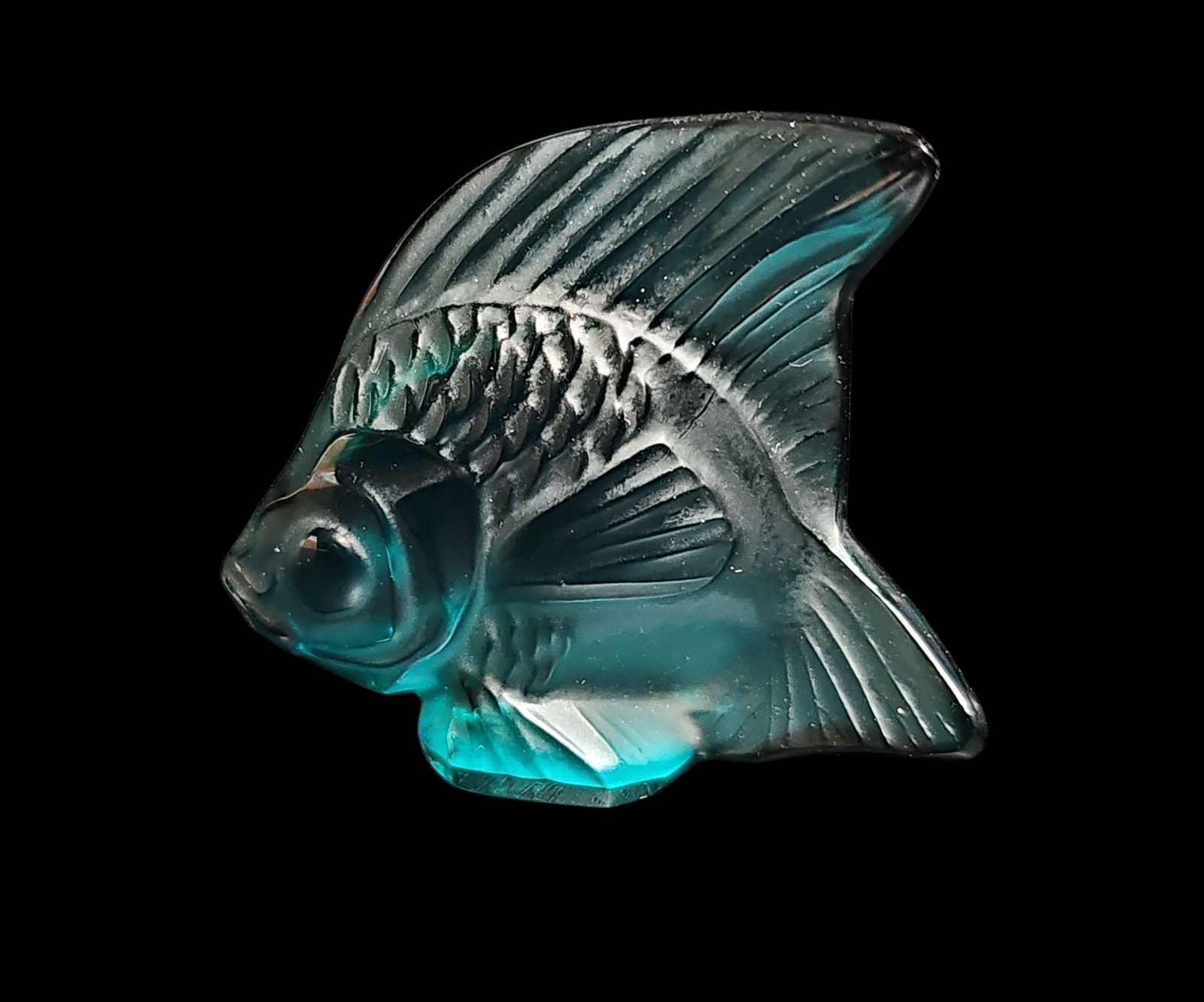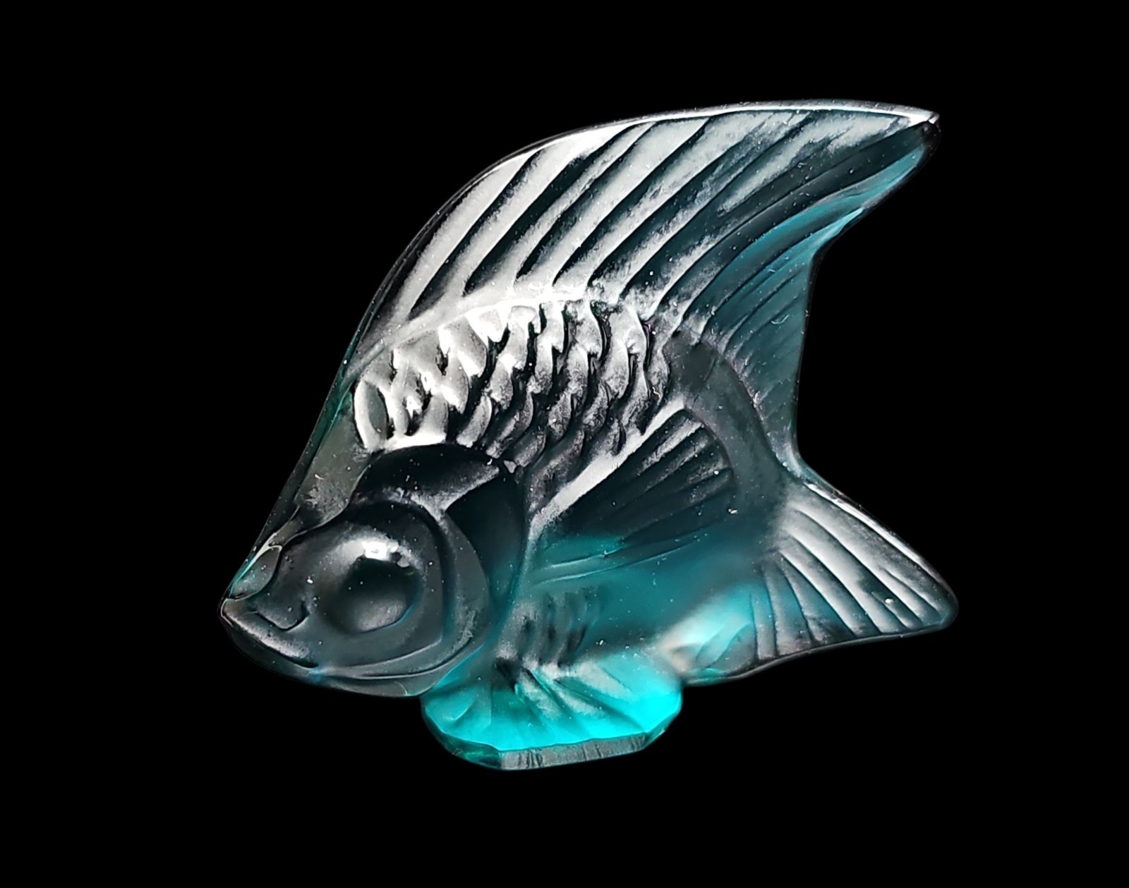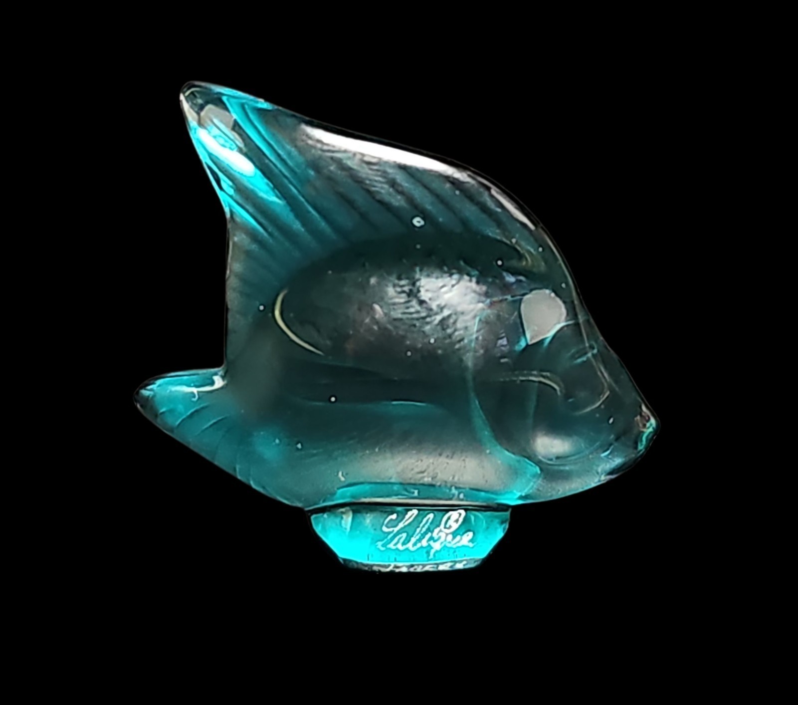 - Lalique Sapphire Teal Lagoon Blue PoissonAngel Fish Figurine France VTG Signed