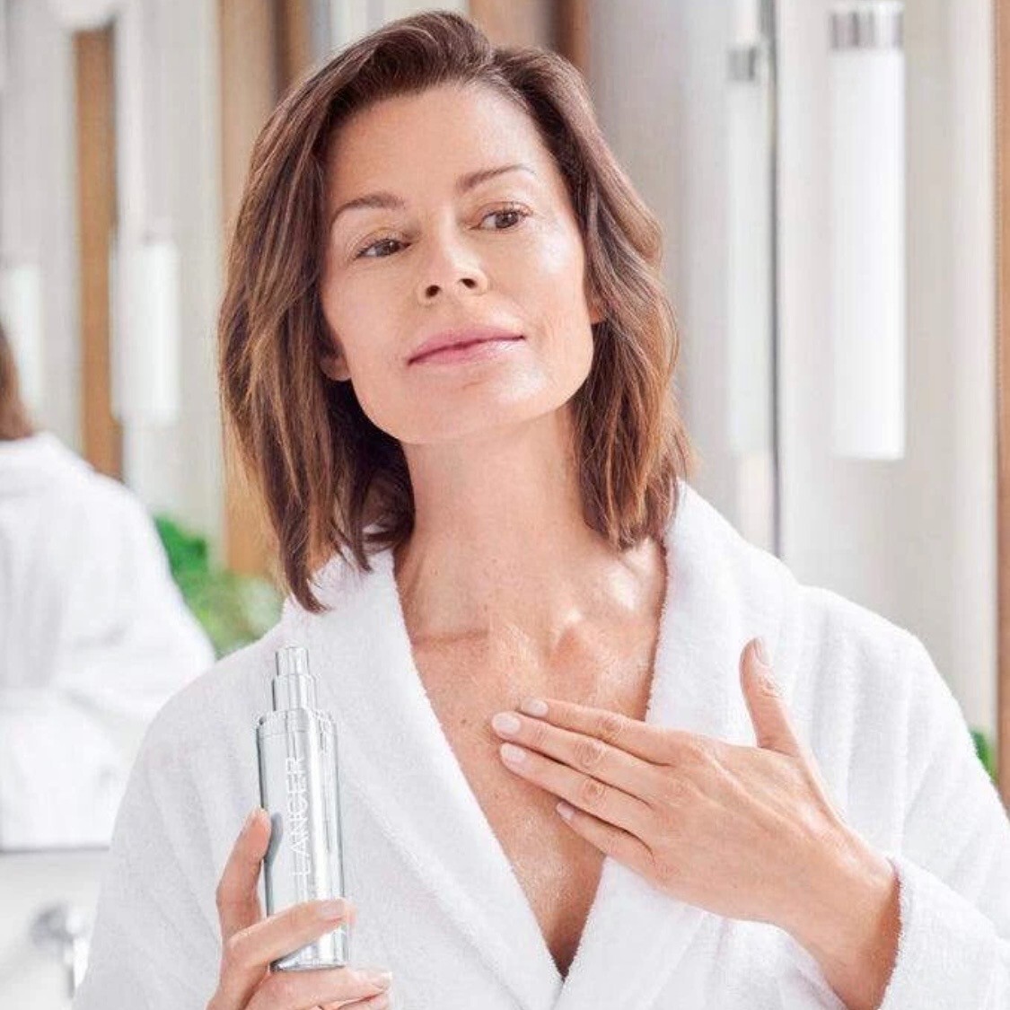 Lancer Contour Decollete Firming Concentrate is an advanced, lightweight treatment serum designed to visibly firm, plump, and smooth the delicate skin of the neck, chest, and bustline. Powered by hyaluronic acid, red seaweed, synthetic snail venom conopeptide, and a 5-peptide liposomal system, this concentrate helps minimize the appearance of fine lines, deep creases, crepey texture, and sun damage. The acid-free exfoliating blend promotes brighter, more even skin tone, while a unique complex of antioxidants hydrates, lifts, and supports natural collagen production. Fast-absorbing and non-greasy, this formula is suitable for all skin types and clinically developed for aging, thinning, or sun-damaged skin.?