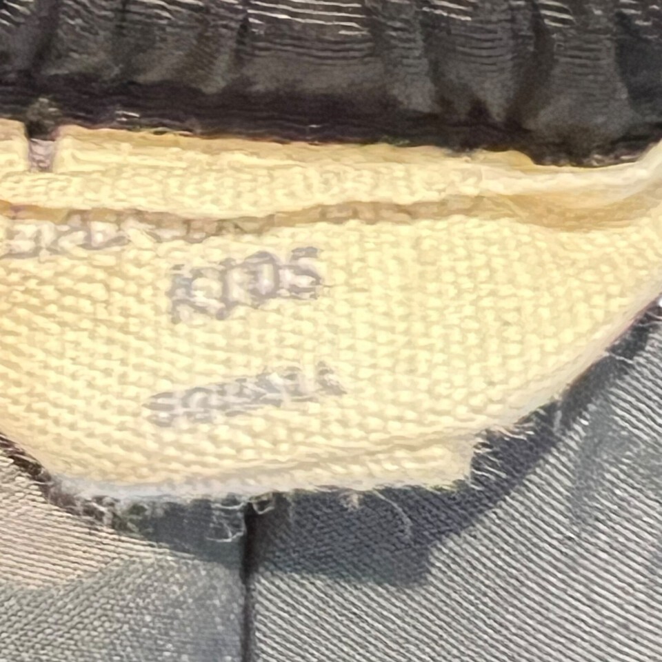 Pant legs show minor wear at the hem. Waist to hem = 34 inches, inseam = 24 inches.