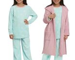 Lands' End Boys Girls Pajama Top Bottoms Hooded Robe Pink Multicolor Snowflakes