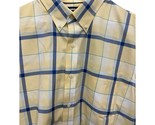 - Lands’ End Shirt Men's L Yellow Blue Plaid Button Up 100% Cotton Short Sleeve
