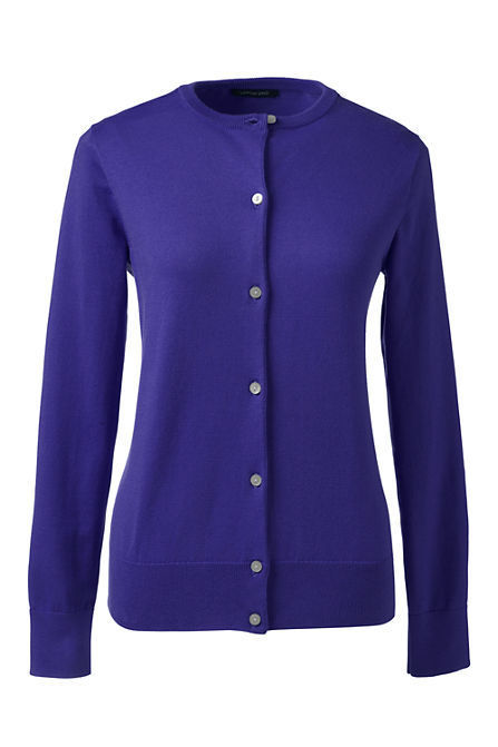 - Lands End Women's Petite LS Supima Crew Cardigan Sweater Purple Sapphire New