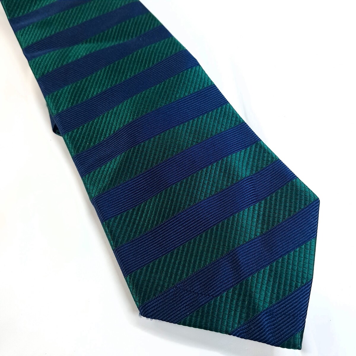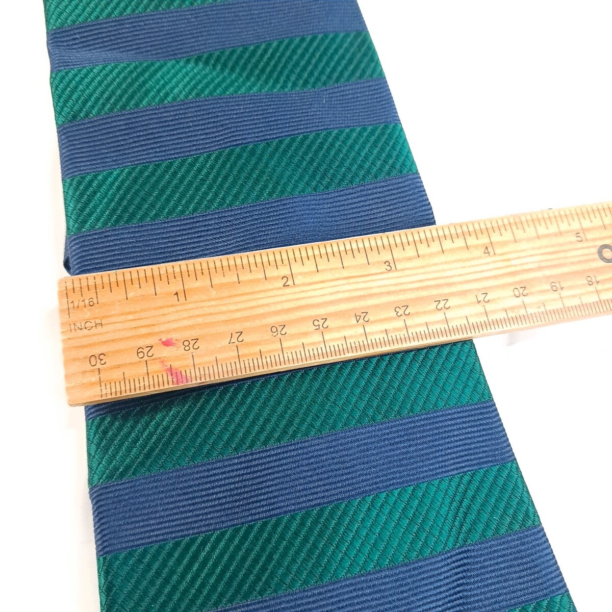 - Lands' End mens tie green navy blue stripes striped Repp USA silk preppy Vintage