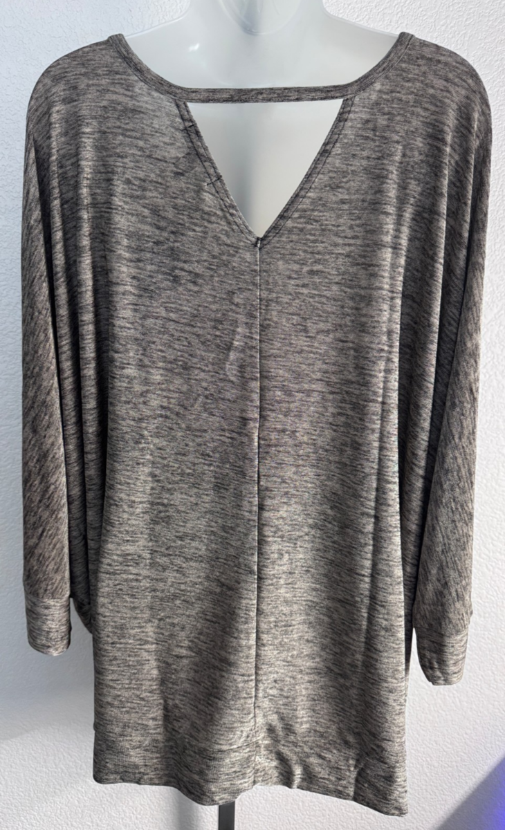 Lane Bryant 26 28 Double V neck brown marled blouse top NWT