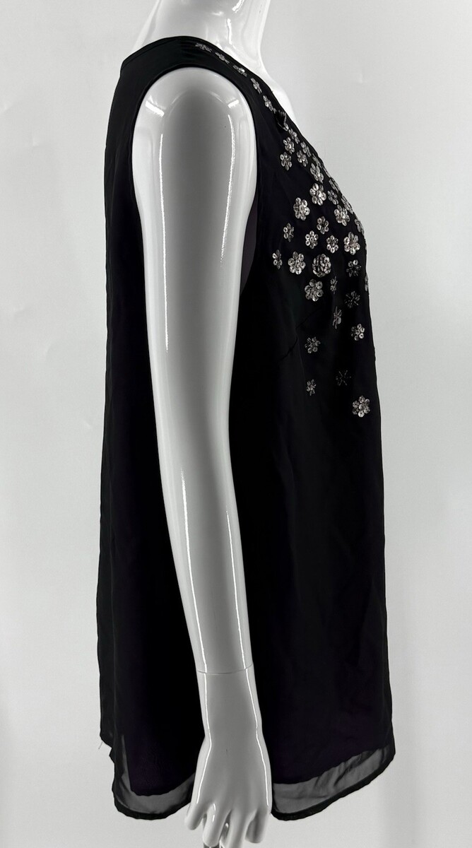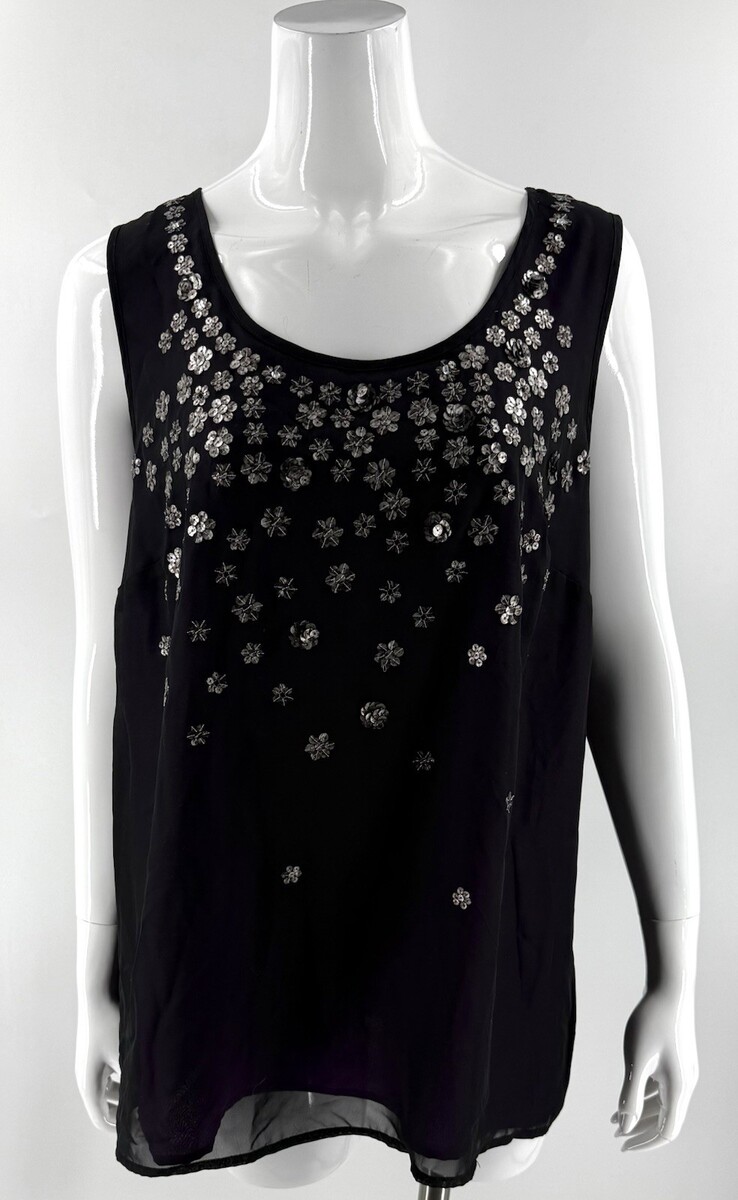 - Lane Bryant Womens Sleeveless Blouse Top Size 20 Sequin Black Purple Underlay