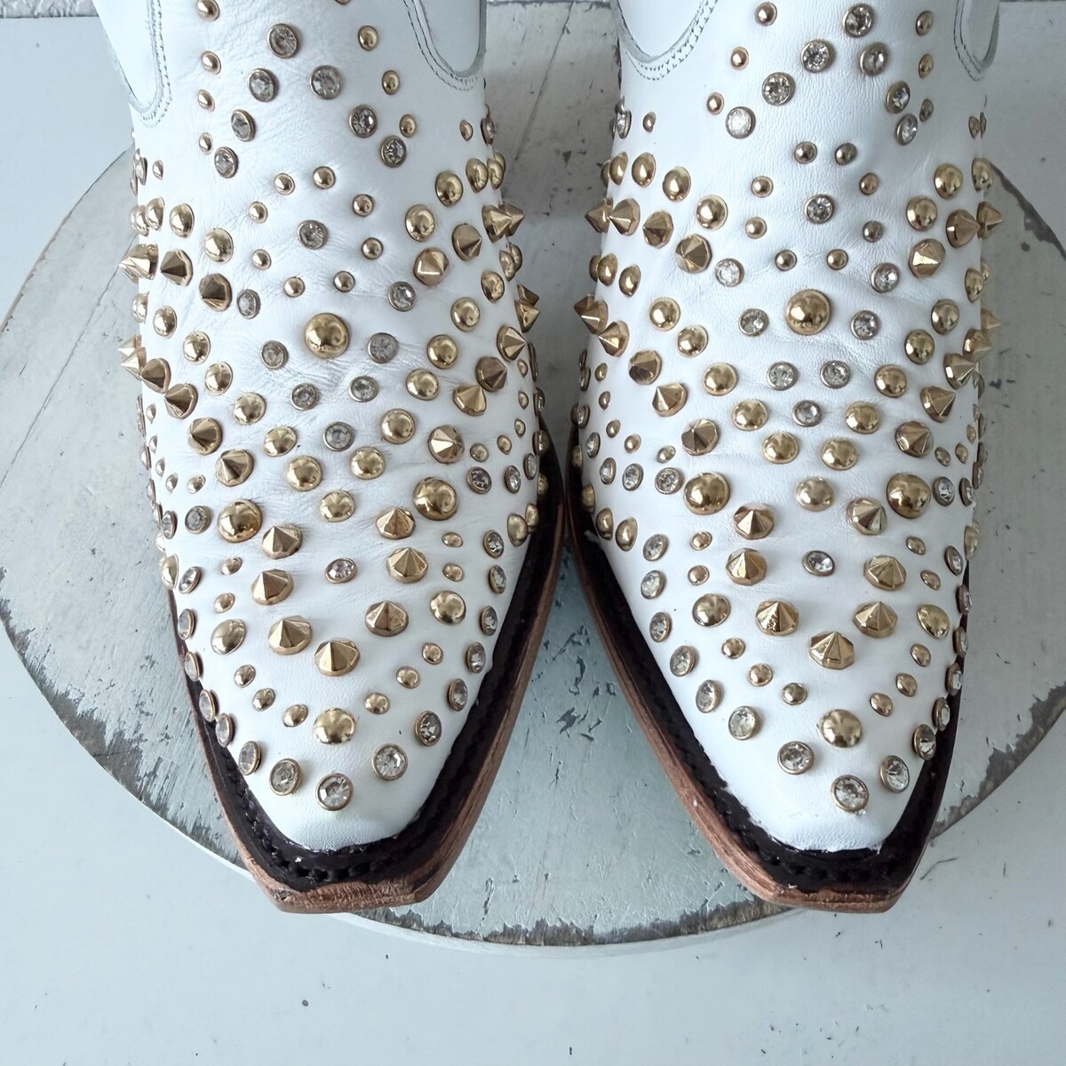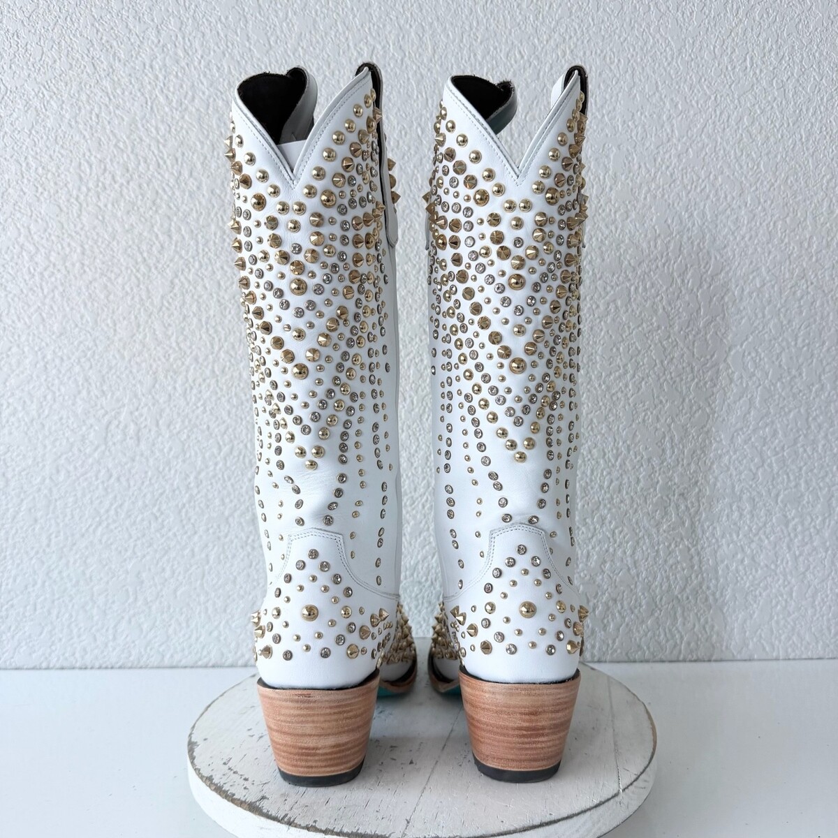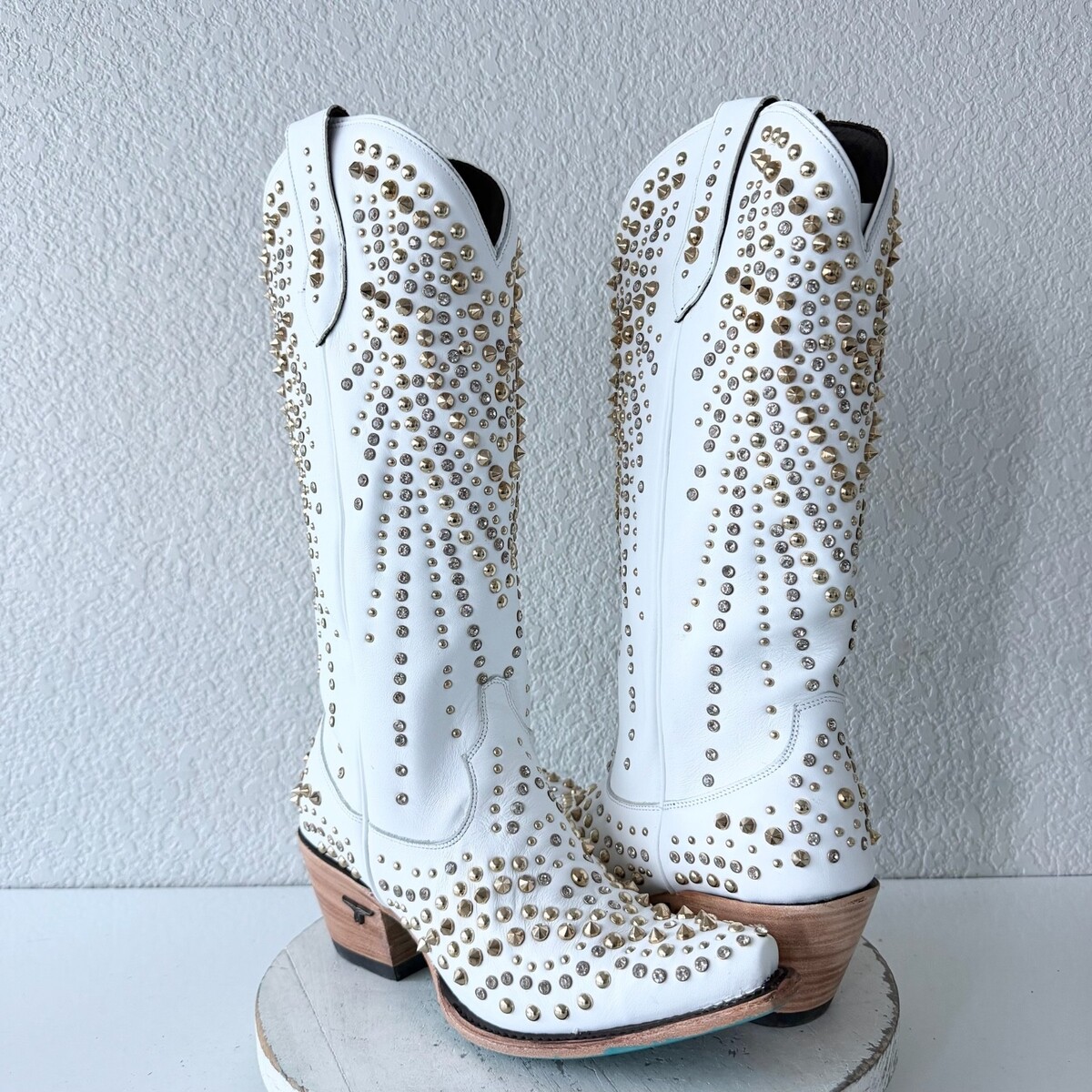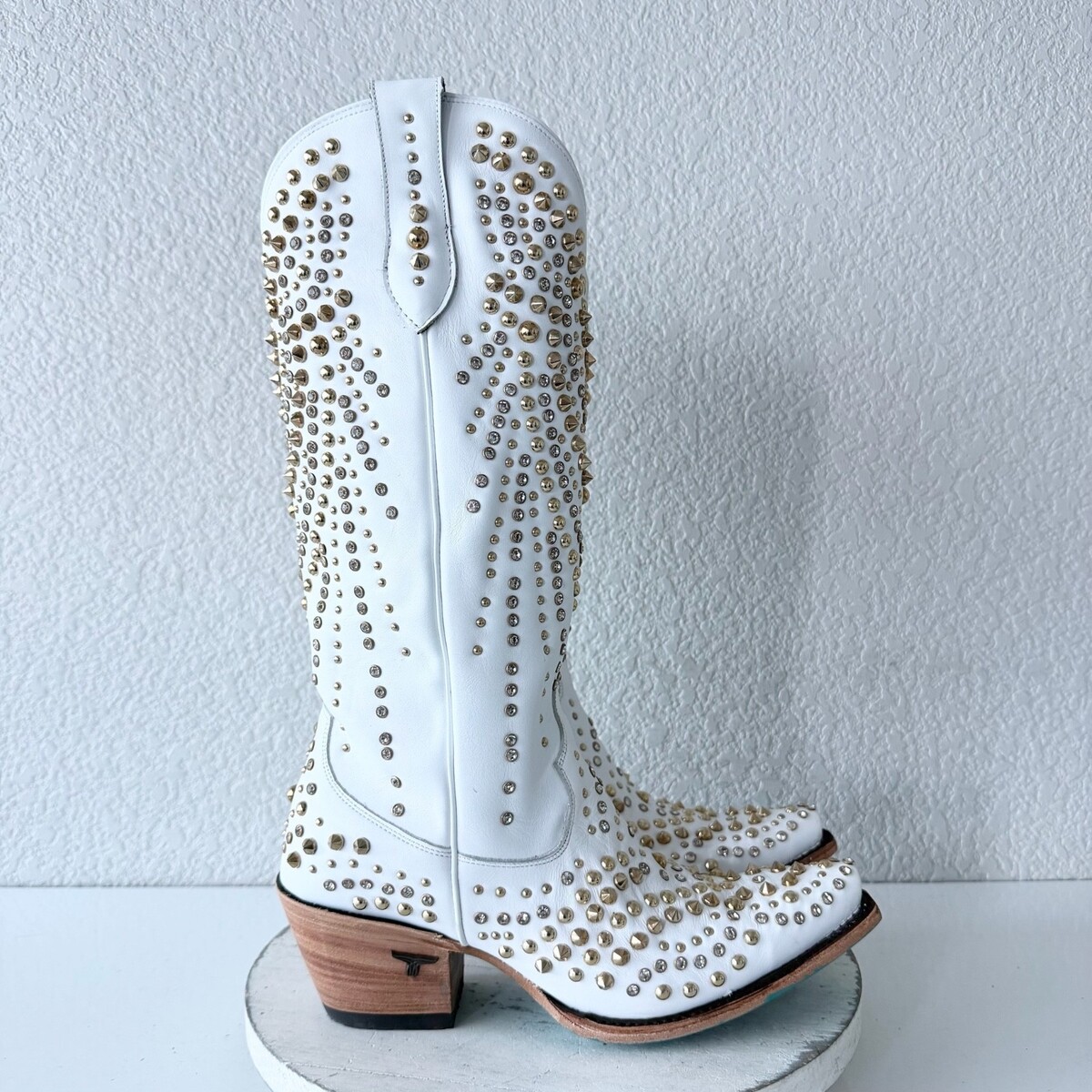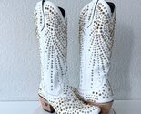 - Lane DOLLY Womens Cowboy Boots 9.5 White Gold Studded Western Cowgirl Mid Calf