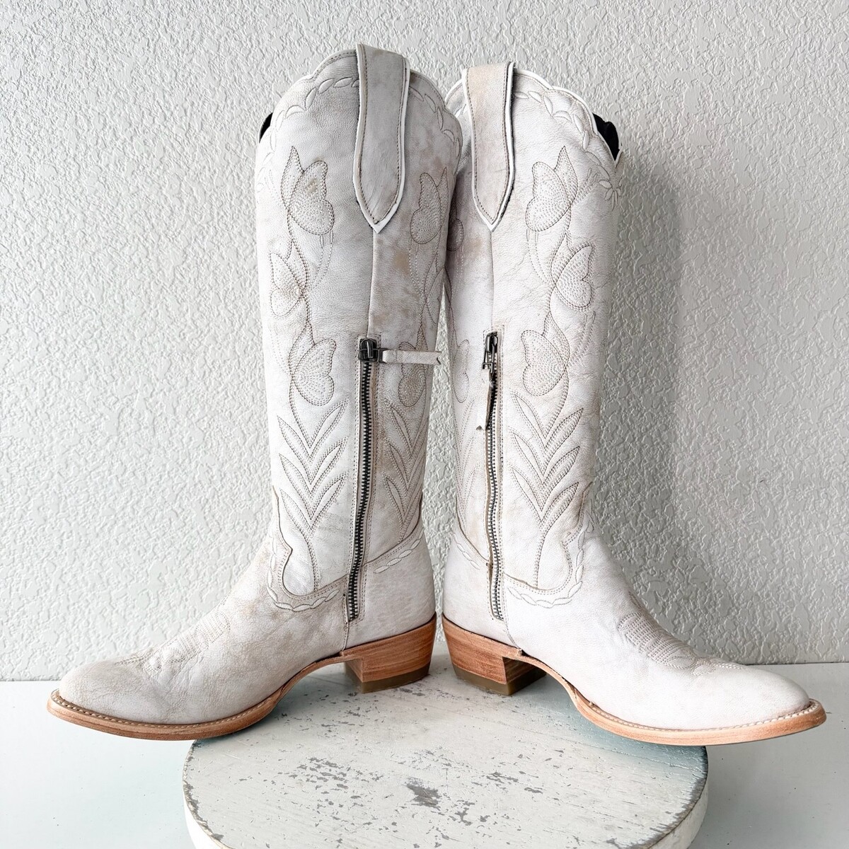 Lane SWEET MEMORIES Knee High Womens Cowboy Boots 7.5 White Cowgirl Western Tall