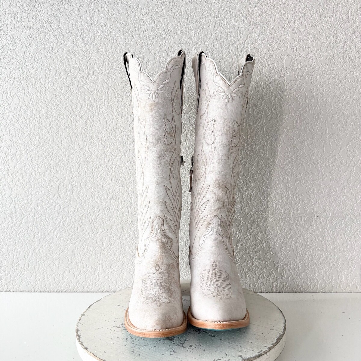 - Lane SWEET MEMORIES Knee High Womens Cowboy Boots 7.5 White Cowgirl Western Tall