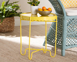 Exuberant design arrives to brighten any outdoor seating area with the lovely Lapis end table. Crafted in China, this industrial piece is crafted from solid metal. Its round tabletop features a scalloped trim that distinguishes the piece with flowing geometry. The Lapis requires minimal assembly and features a minimalist, open frame that allows light to flow naturally while providing excellent stability. Perfect for any patio, porch, or deck area, the Lapis end table is a vibrant addition.
