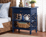 Features: Natural rattan pole arranged in a classic Chippendale inspired design Constructed from Natural Rattan and Engineered Wood One (1) drawer and two (2) open shelves organize bedside essentials Rectangular tabletop with flared edges creates a sleek silhouette Tapered metal drawer knob lends a cool modern touch Arrives Fully Assembled Set Includes: One (1) Nightstand