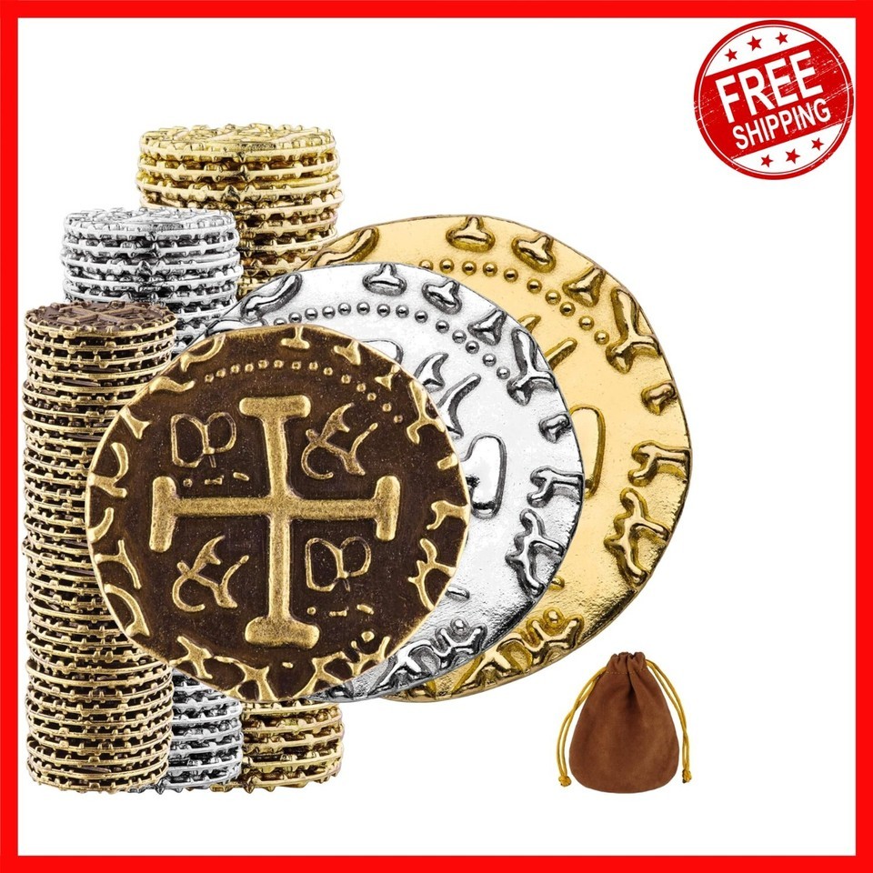 - Large 102-Piece Pirate Coin Set - Gold, Silver & Bronze Treasure Coins for Games