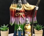 - Large 16.75"H Rainbow Holy Death Santa Muerte Holding Scythe Globe W/ Owl Statue