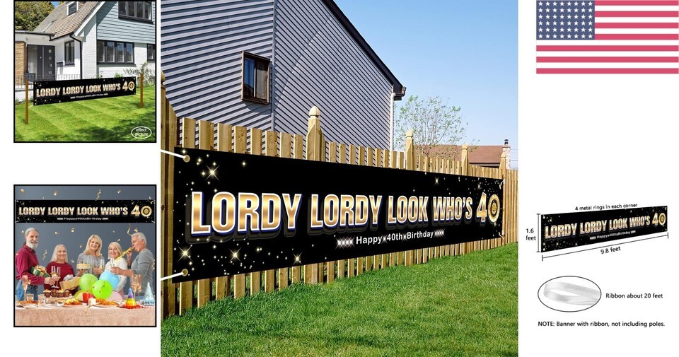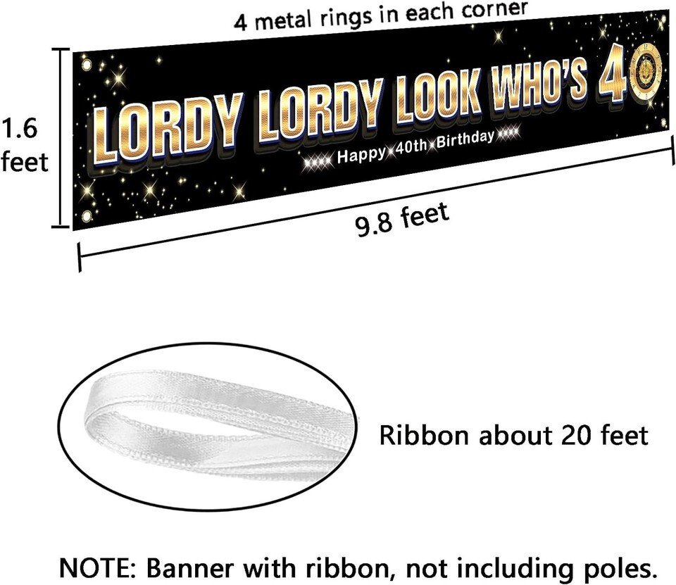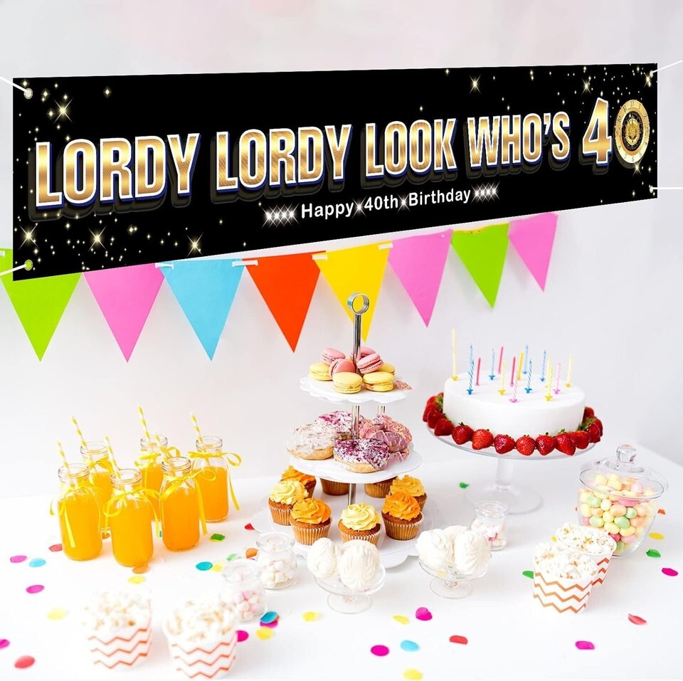 - Large 40th Birthday Banner: Funny Lordy Lordy Look Who's 40 Decor for Parties
