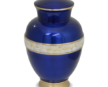 Handcrafted from fine brass, this urn features a rich blue finish accented by a genuine Mother of Pearl band. The gleaming contrast of materials creates a timeless design that offers both beauty and comfort.