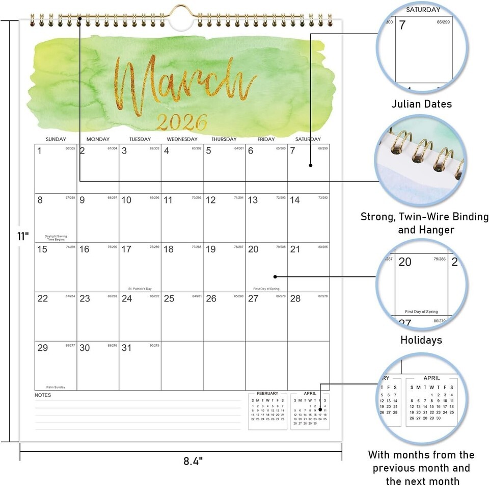 Monthly Overview: This wall calendar spans from July 2025 to December 2026, providing ample time for your planning needs. Size: 8.5" x 11".