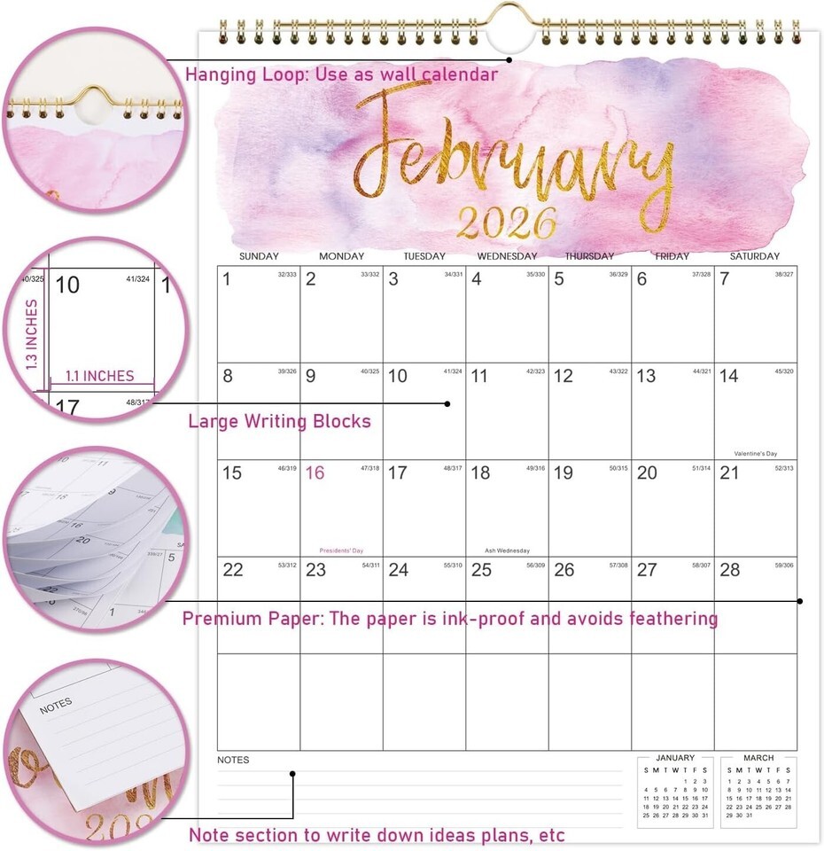 Sturdy Wire Binding: The strong golden wire binding with hanging loop ensures your calendar hangs steadily and elegantly on any wall.