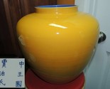 - Large Chinese 14" Flower Pot / Fish Bowl Jardiniere persimmon yellow blue marked