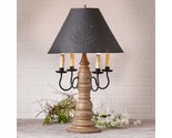 - Large Colonial Table Lamp with Punched Tin Shade - Textured Pearwood Finish USA