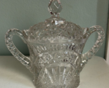 Large Cut Glass Candy Dish with Lid. Beautiful crystal candy dish with intricate design. Features a matching lid and dual handles. Over 9? wide x 8.75? tall. Excellent Used Condition - See photos for further description.