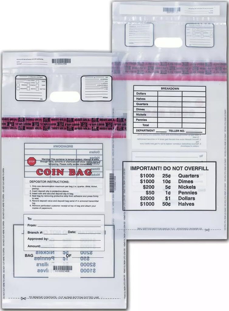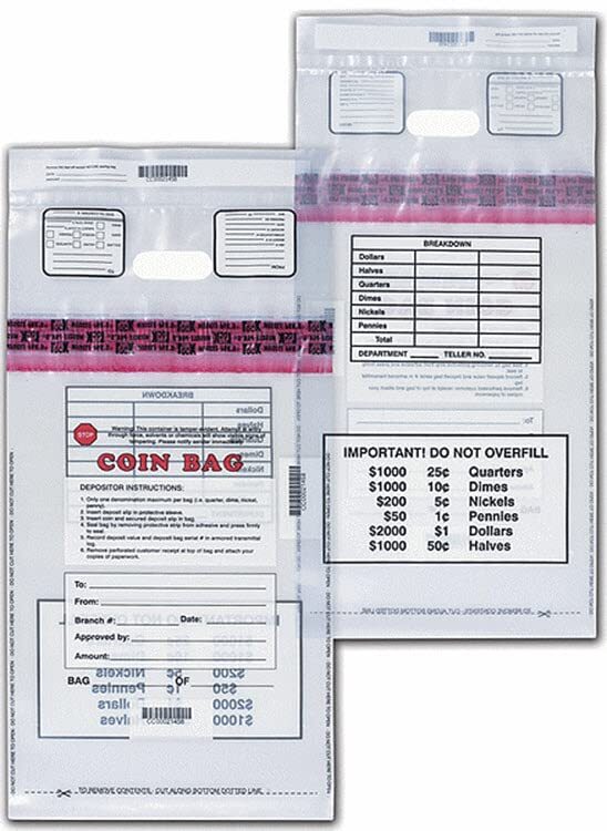 - Large Heavy Duty Coin Deposit Bag, Size 20 x 12, 100 Bags, Clear