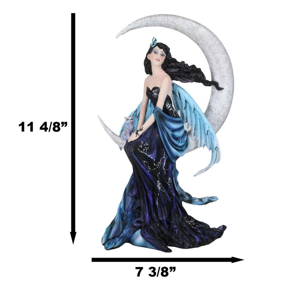 Ebros Large Indigo Moon Celestial Witching Hour Fairy with Kitten Cat Statue 11.75"H