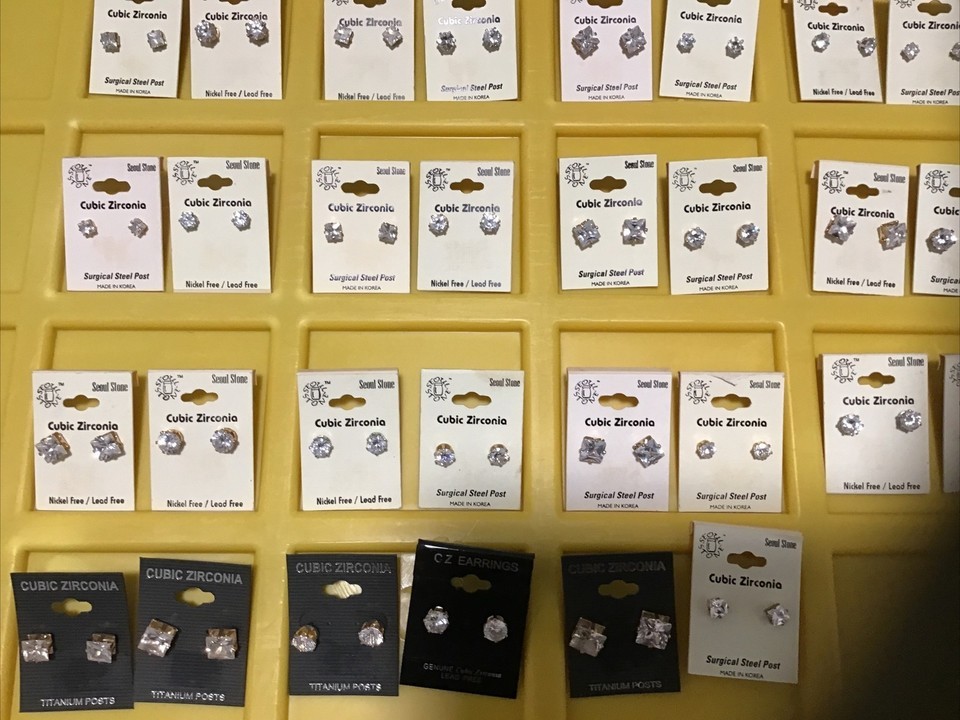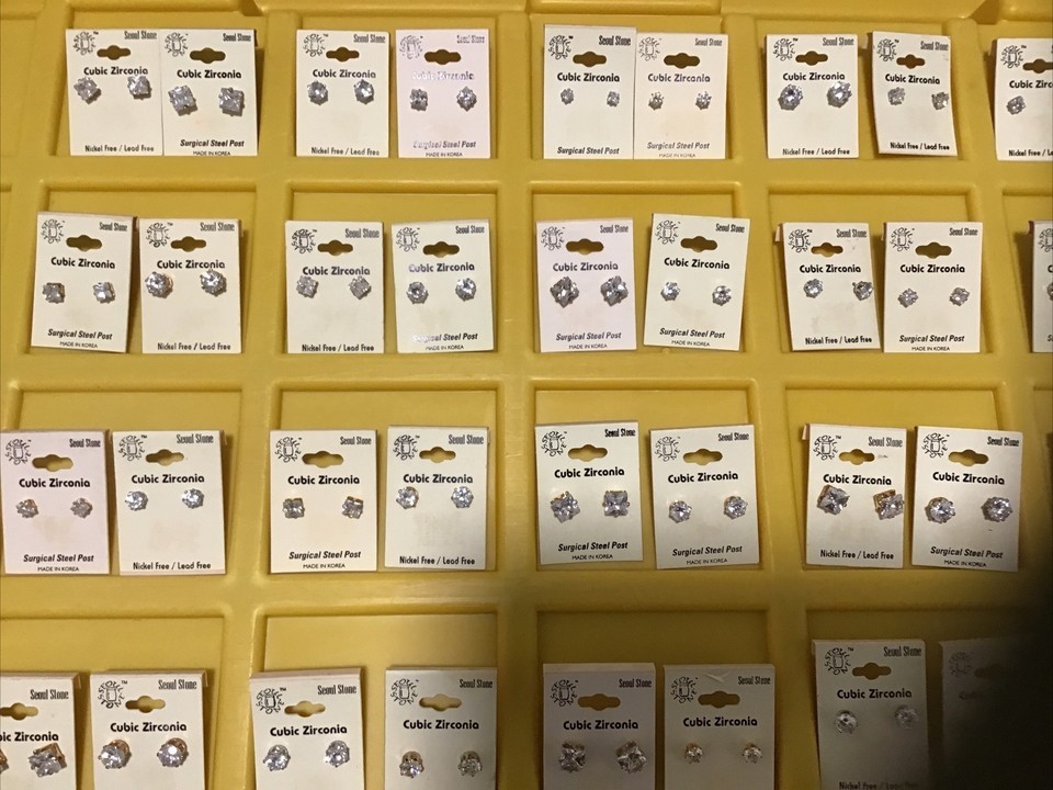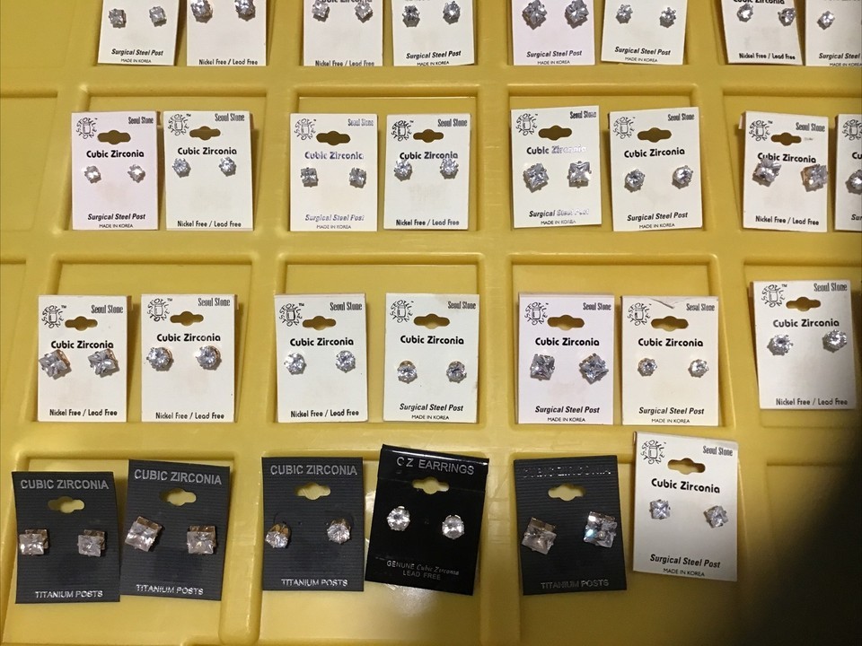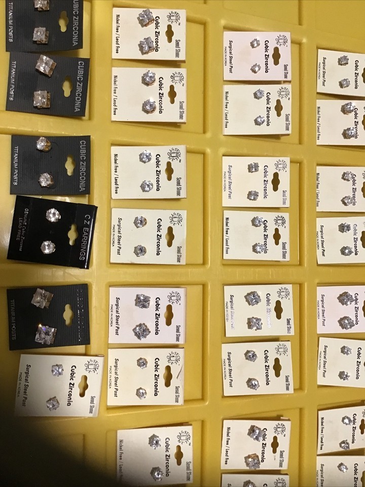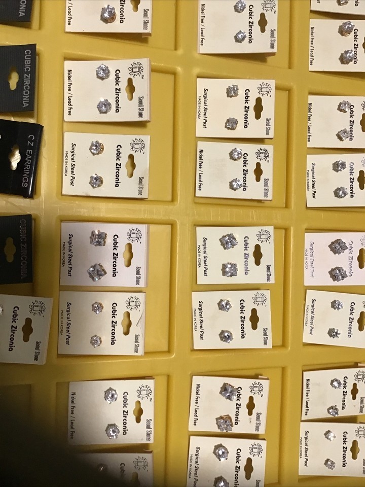 - Large Lot 46 Pairs Seoul Stone Stud Cubic Zirconia Nickel Free/ Lead Free Silver