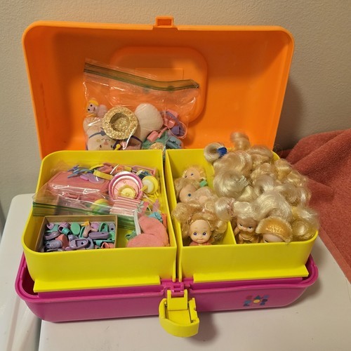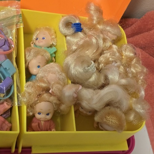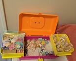 Large Lot Of Vintage Tyco QUINTS Dolls With Accessories / Clothing / ETC. 1990 / 1991. Total dolls: 28. 20 small dolls / 8 bigger girls (but 1 of the girls has an arm removed - don't know if it goes back on)! There are tons of random accessories. Please See all Photos! Comes in this pink / Orange case that someone wrote Quints on.