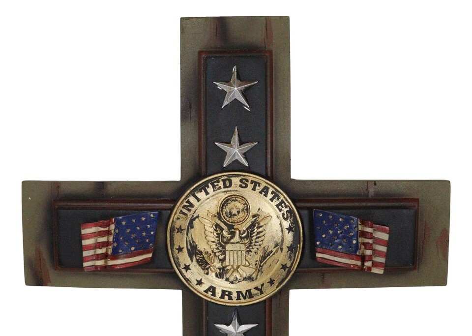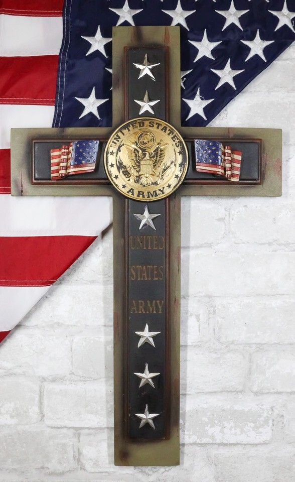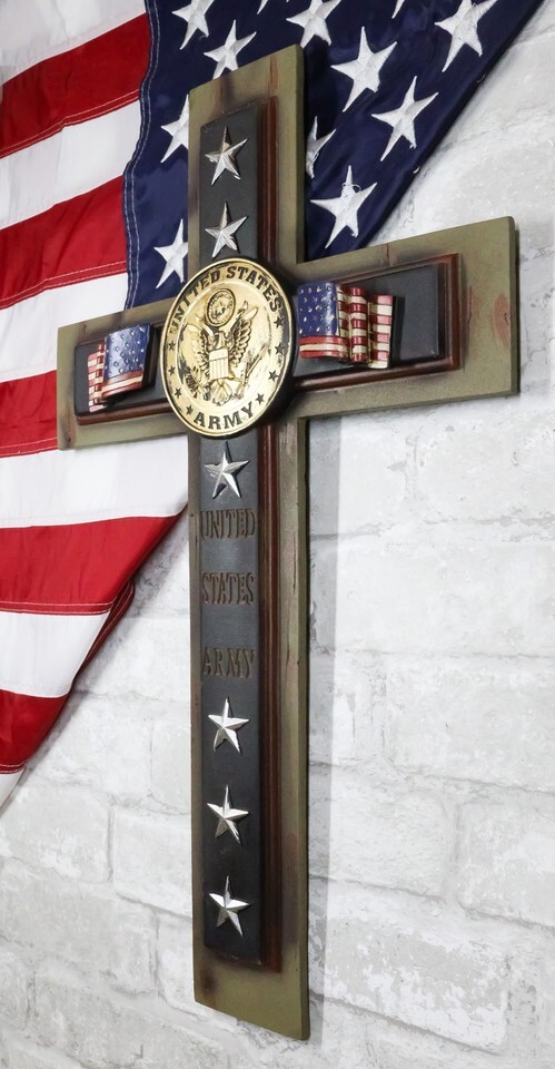? This Large US Army Wall Cross is made of designer composite resin, hand painted and polished in colorful finish. Color Tone may vary slightly from pictures.