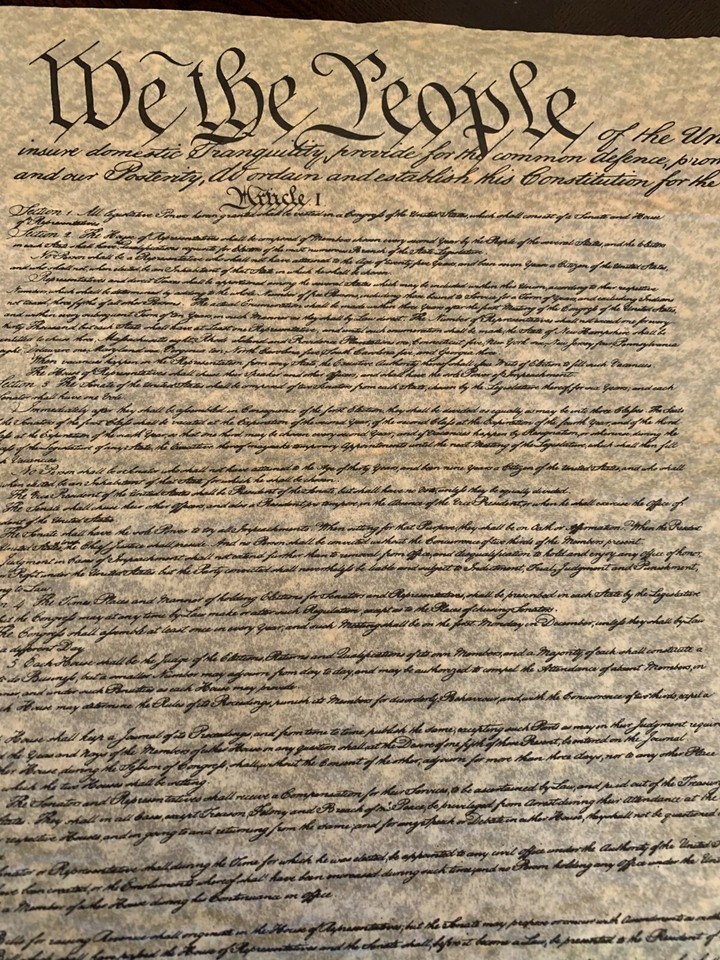 Large Parchment replica poster of the United States Constitution - 23"H x 29"W