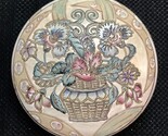 Vintage Oklahoma Import Co. Porcelain Flower Basket Trinket Box Round Covered.