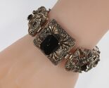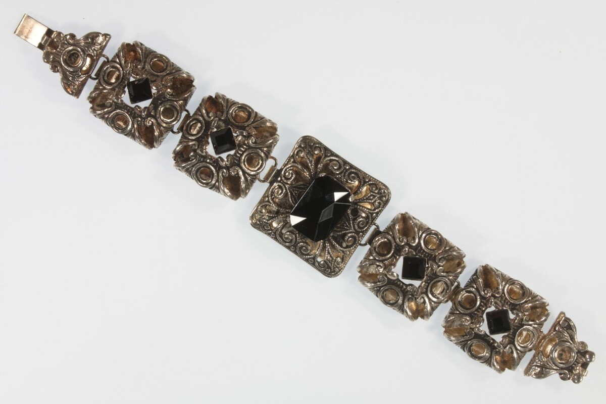 - Large Vintage Sterling Silver Black Glass Statement Bracelet! 65.7g