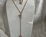 - Lariat Y Station Necklace Gold Tone 28" Heart Key Crystal