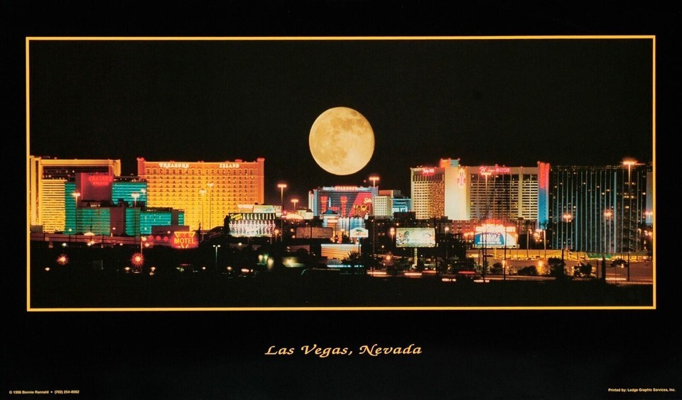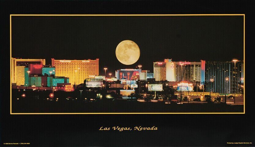 - Las Vegas NV Poster Full Moon Over Strip US Seller 15"X26" Free Shipping/Returns