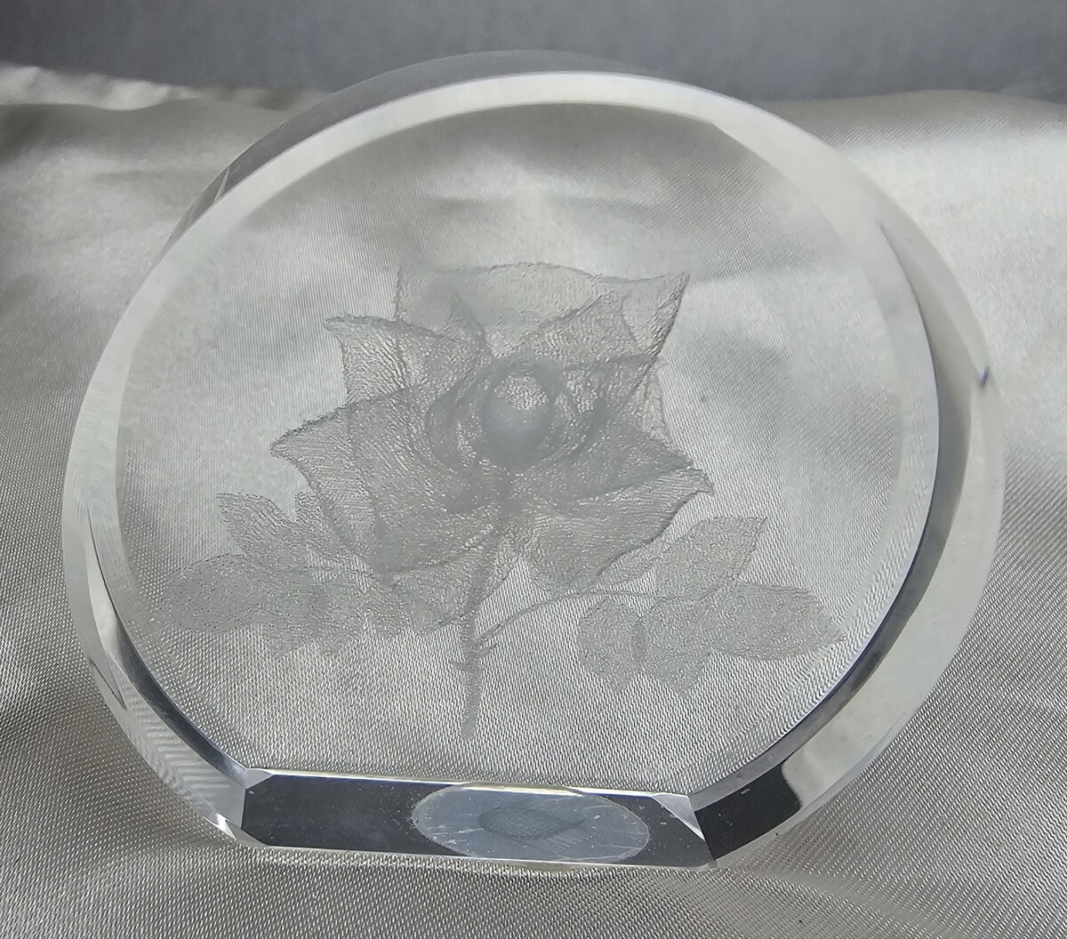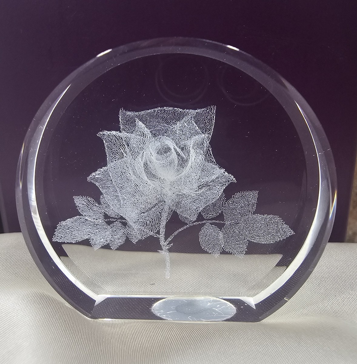 Laser Etched 3D Rose Glass Crystal Impressions 2"
