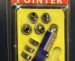 This laser pointer comes with 5 interchangeable heads and is perfect for sales meetings or lectures. Projects an intense solid red dot up to 500 yards away. The 5 shapes include standard point - happy face - money sign - thumbs up and a heart. Also great to play with your cat as they try to chase and catch the laser. Uses 1.5V AG13 battery cells or LR44 batteries (included). Laser measures 2.75" long and includes a key ring. Set is packaged inside a plastic storage container.