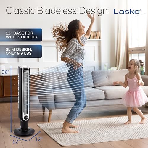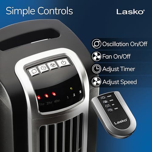 - Lasko Oscillating Tower Fan with Remote Control, 3 Quiet Speeds, Timer for Bedro